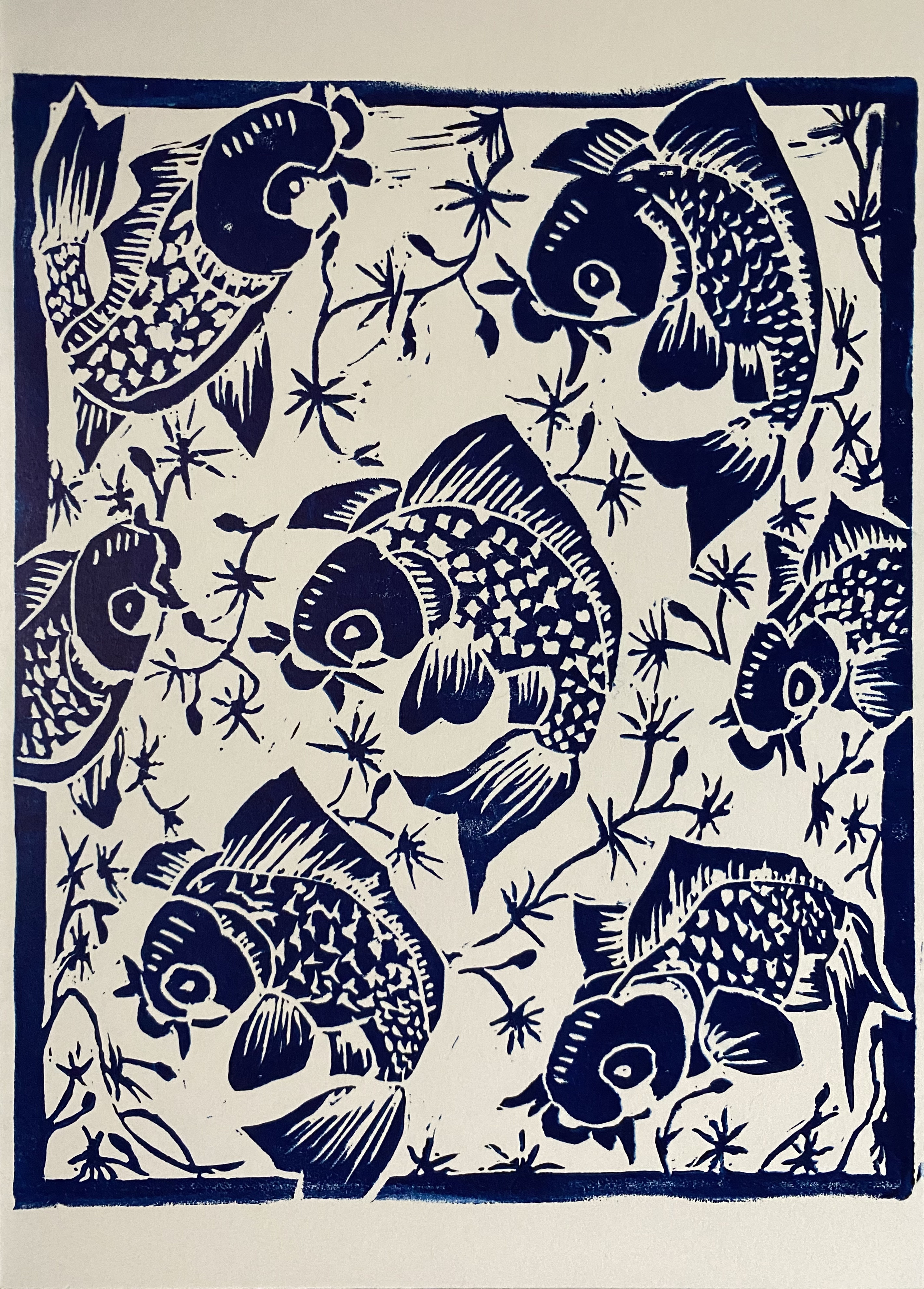 The greeting card design was based on the pattern from a Chinese Qinghua porcelain vase. They are printed on any scraps or appropriately sized cardstock, and more are printed as I need them. I include a greeting card of some sort with all prints that I ship.