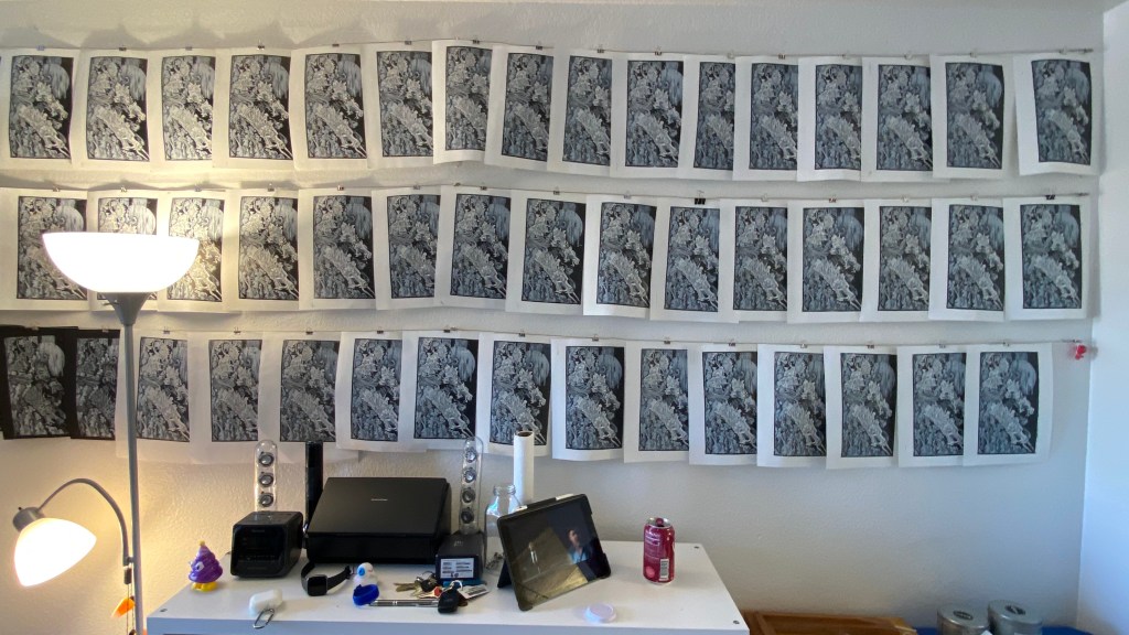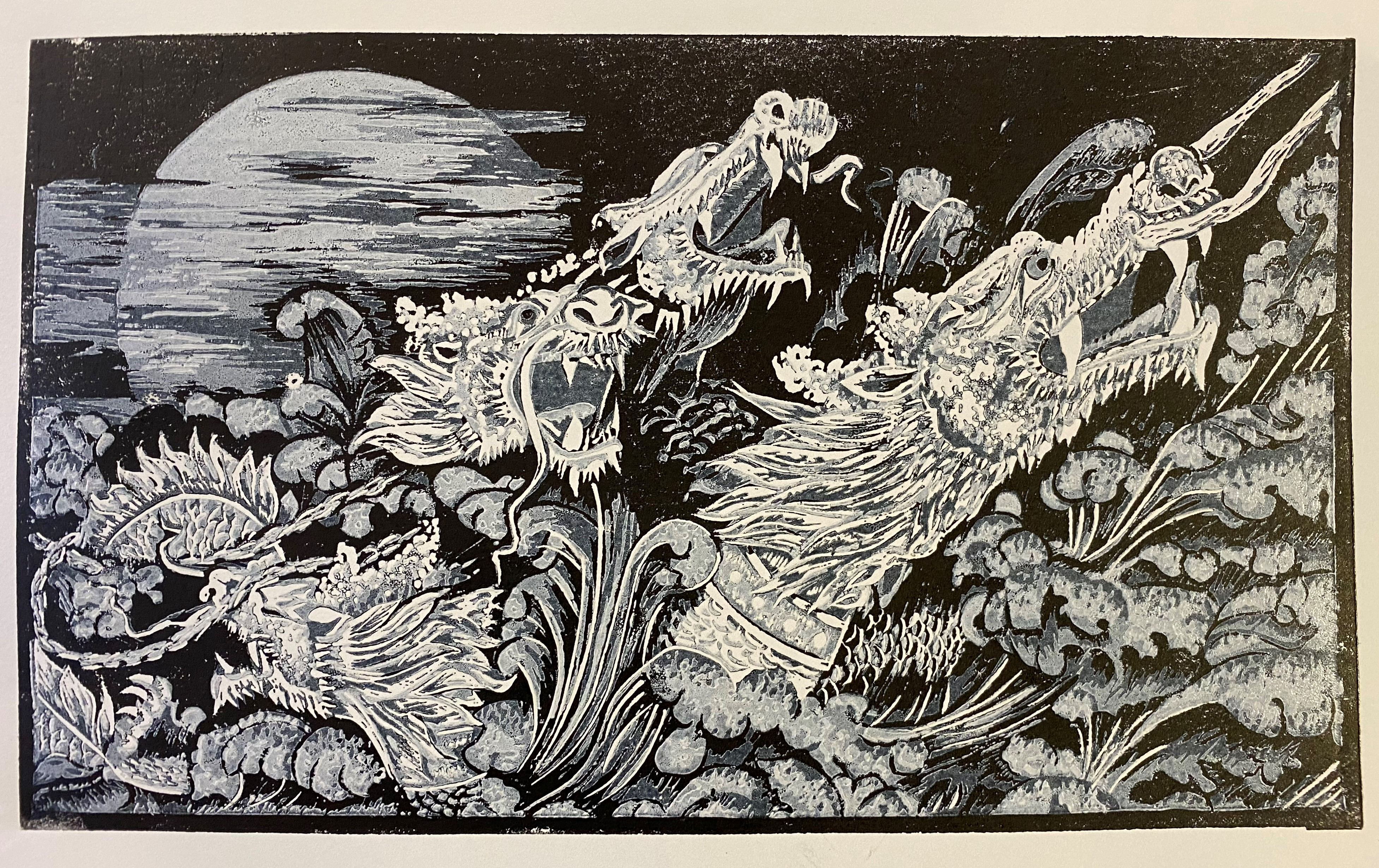 “As Witnessed, Broad Off The Starboard Beam” is five blocks printed on Blick Printmaster Paper. They’re printed by hand, and without use of a mechanical press.