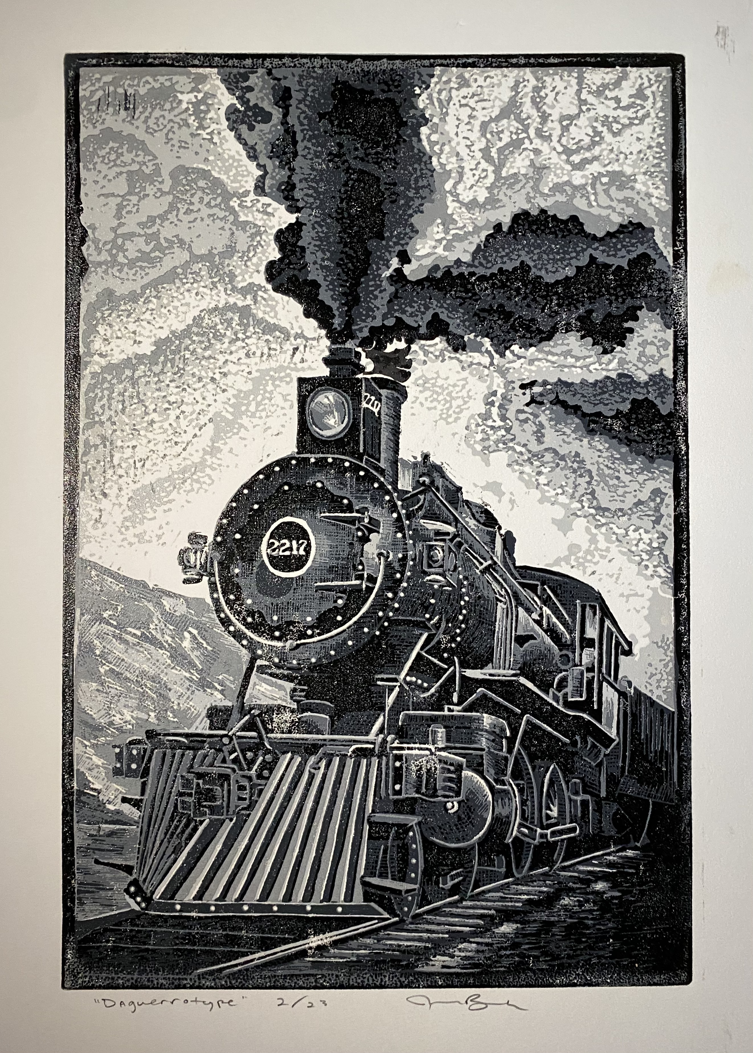 “Daguerreotype” is six plates printed onto either Speedball Arnhem 1618 Printmaking Paper or Canson Edition Paper. The Speedball paper ended up being best suited to the print, as I was still printing by hand, without the use of a mechanical press, and relied on an untextured paper in order to transfer the image smoothly.