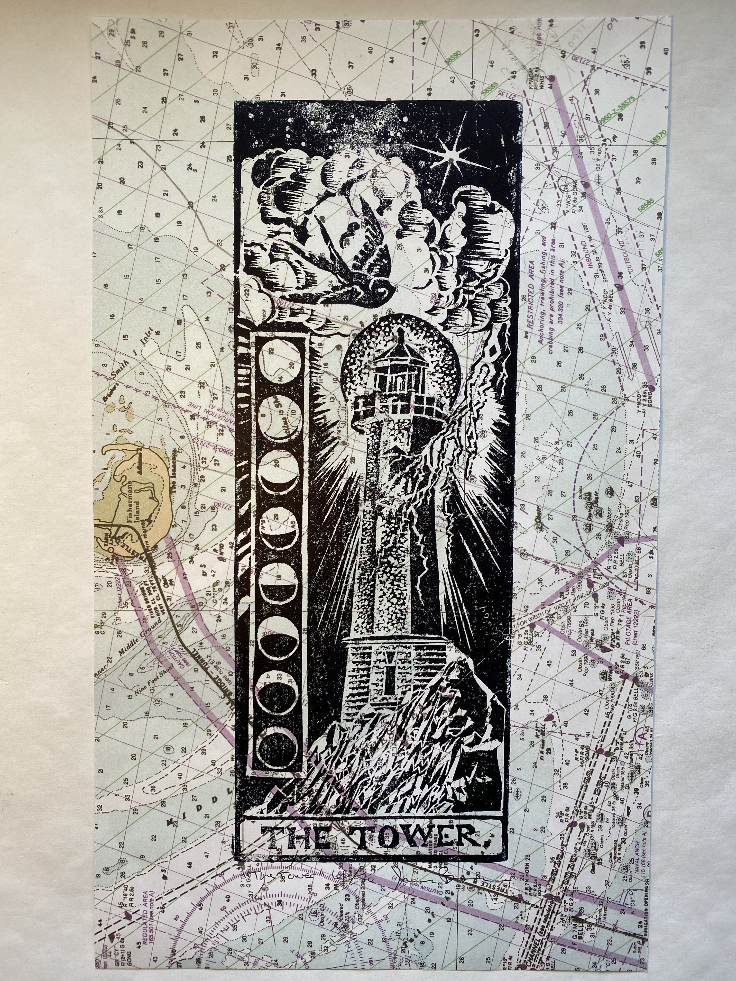 Tagged as chart, linoprint, map, printmaking, relief print, tarot, the tower, tower, training chart
